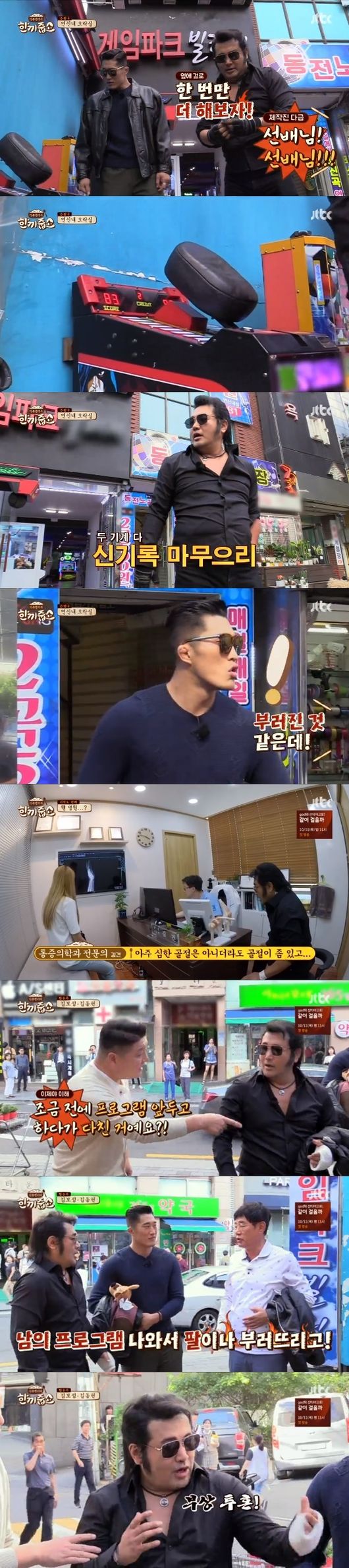 '한끼줍쇼' 김보성이 등장하자마자 펀치볼을 치다 골절상을 입었고, 한끼 도전도 종료 10분을 남기고 극적으로 성공해 드라마를 썼다.