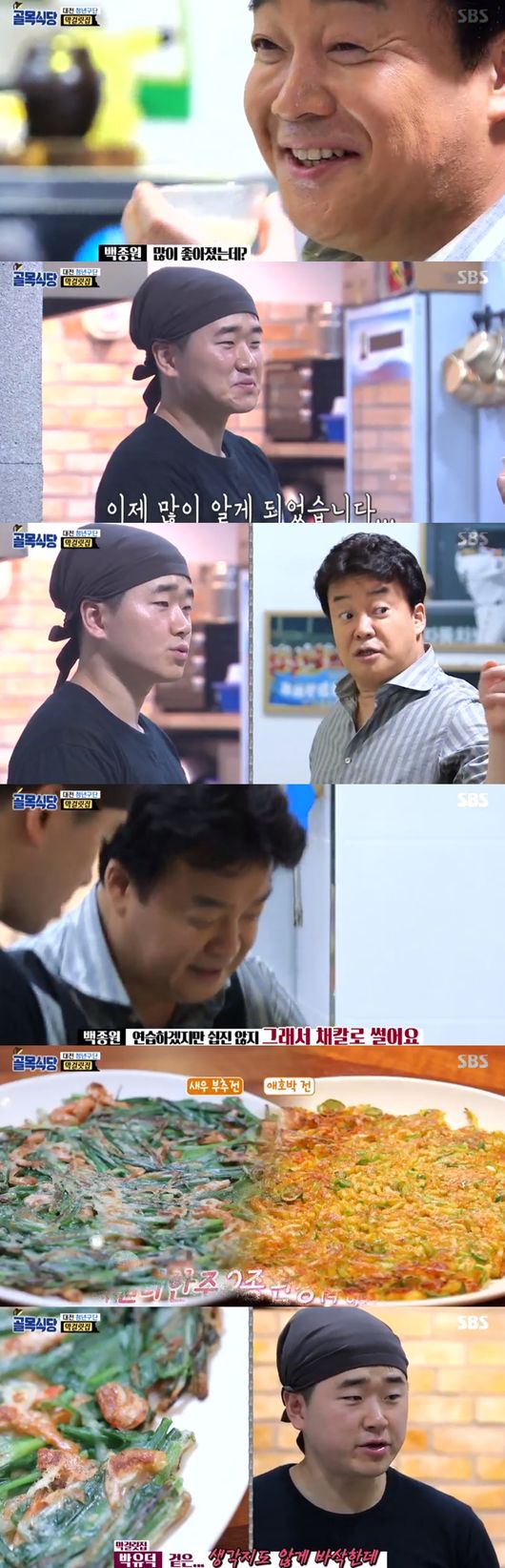 이후 백종원은 막걸리와 함께 먹을 수 있는 호박전과 부추전 만드는 법을 알려줬다. 이전과 다르게 막걸릿집 사장은 겸손한 자세로 백종원의 레시피를 꼼꼼히 배웠다.