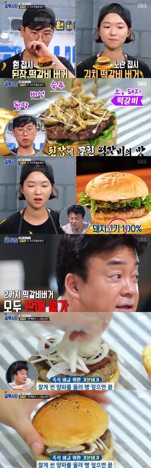 백종원은 제일 먼저 버거집을 찾았다. 버거집 사장은 김치떡갈비 버거와 된장떡갈비 버거가 두 가지를 만들었다. 백종원은 시식 후 "난해하다. 정체성이 없다. 한쪽에서는 김치찌개 맛이 나고 한쪽에서는 된장찌개 맛이 난다"고 혹평했다.