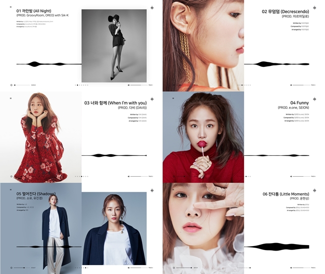 수록곡에는 ‘수지 파트너’ 아르마딜로, ‘헤이즈 파트너’ 다비, ‘아이유 파트너’ 제휘 등 여성 솔로 가수와 남다른 호흡을 자랑하는 프로듀서들이 소유의 앨범에 모여 또 다른 환상적인 호흡을 보여줘 특별한 앨범을 만들어냈다.