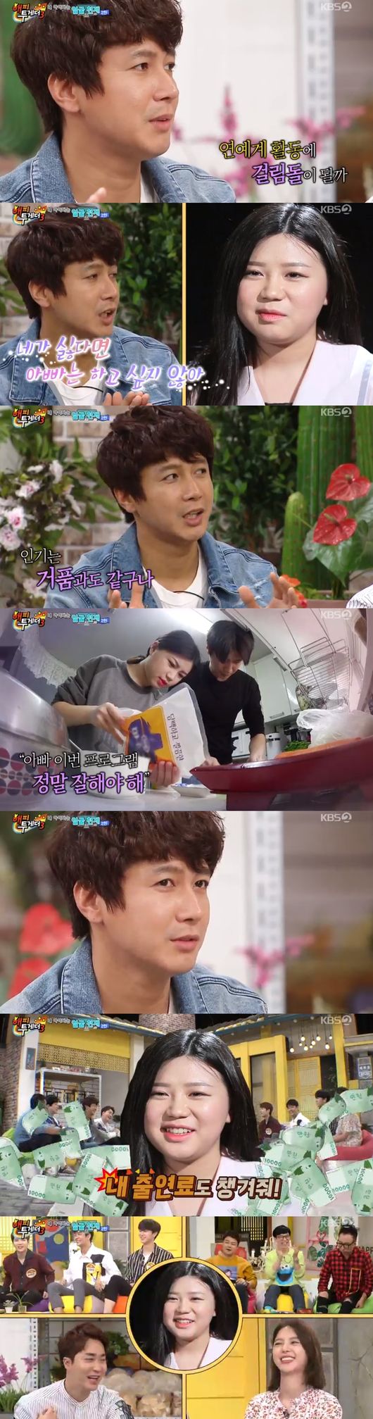 이후 살림남 제작진으로부터 연락이 왔다고 다만, 딸이 함께 출연해야한다고 했다. 딸 수빈에게 의견을 물으니 "출연하겠다고 했다. 아빠가 그때 나를 끝까지 책임져주고 나로 인해 힘든 시기를 겪고 있다는 걸 나도 알고 있고 했다. 이번 프로그램이 어떻게 보면 아빠한테 마지막 기회일 수 있다. 딸이 고 2때였다. '아빠 이번 프로그램 정말 잘해야해'라고 했다. 그리고 나즈막하게 '내 출연료도 챙겨줘'"라고 말해 웃음을 자아냈다.