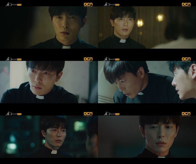 지난 4일 방송된 OCN수목 오리지널 ‘손 the guest’ 8회에서는 귀신을 보는 영매의 자질을 지닌 정서윤(허율)에게 드리운 악령을 쫓아내기 위해 교구의 승인없이 구마의식을 펼치고자 마음먹는 최윤(김재욱)의 모습이 그려졌다.