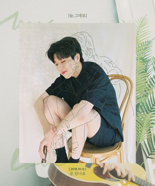 공개된 이미지에서는 유승우가 감각적인 분위기의 배경에서 화사한 분위기를 뿜어내며 보는 이들의 이목을 집중시킨다. 유승우는 깔끔한 블랙 컬러의 의상을 차려입고 의자에 앉아 청량한 비주얼을 자랑한다. 함께 공개된 텍스트 “늘, 그대로 2018.10.12 곧, 만나요”는 신곡에 대한 궁금증을 한층 증폭시킨다.