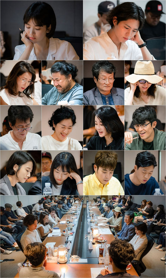 ‘남자친구’의 첫 대본리딩은 지난 8월, 상암동에서 진행됐다. 유영아 작가와 박신우 감독을 비롯해 송혜교(차수현 역)-박보검(김진혁 역)-차화연(김회장 역)-고창석(남명식 역)-신정근(김장수 역)-백지원(주연자 역)-문성근(차종현 역)-남기애(진미옥 역)-김혜은(김선주 역)-김주헌(이대찬 역)-곽선영(장미진 역)-전소니(조혜인 역)-표지훈(김진명 역)-이시훈(박한길 역) 등 전 출연진이 총출동, 첫 만남부터 특급 케미를 과시했다.