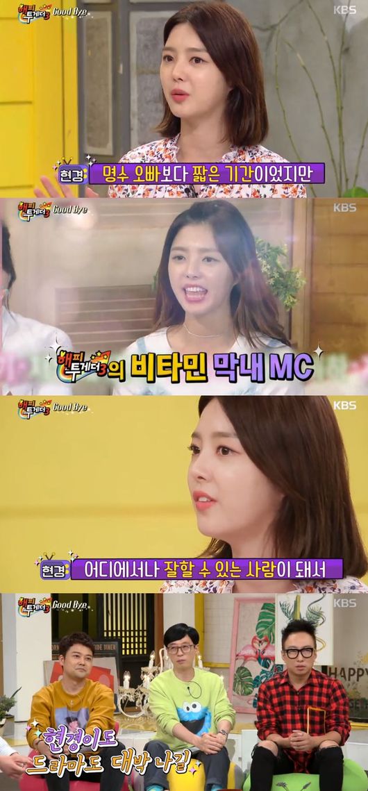그런가 하면 '해피투게더3'의 귀염둥이 막내였던 엄현경은 "명수 오빠보다 짧은 기간이었지만 너무 행복했다. 모두들 언제나 친오빠처럼 챙겨줘서 정말 고마웠다"면서 "저도 어디에서나 잘 할 수 있는 사람이 돼서 좋은 기회로 게스트로 또 나오겠다"고 다짐해 앞으로의 활약을 기대케 만들었다.