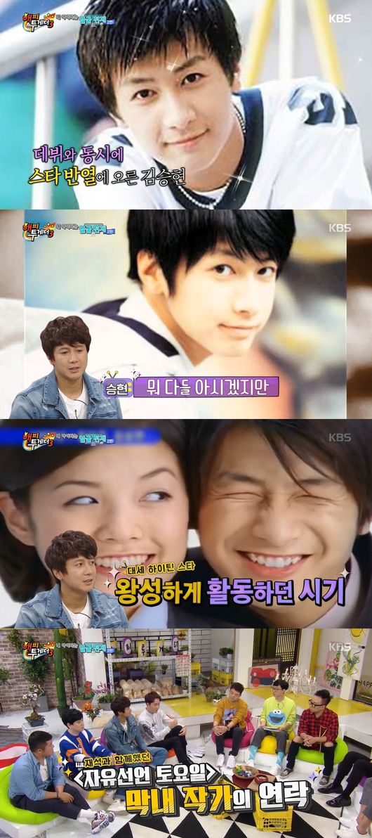 김승현은 고등학교 시절 데뷔해서 드라마와 예능을 휩쓸며 엄청난 인기를 누렸다. 김승현은 당대 최고 아이돌 H.O.T, 젝스키스 등과 어깨를 나란히 했다. '출발 드림팀', '자유선언 토요일' 등에출연해서 유재석과 함께 출연하기도 했다.