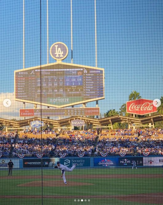 방송인 박은지가 류현진 선수가 선발로 나선 LA다저스 경기 직관을 인증했다.