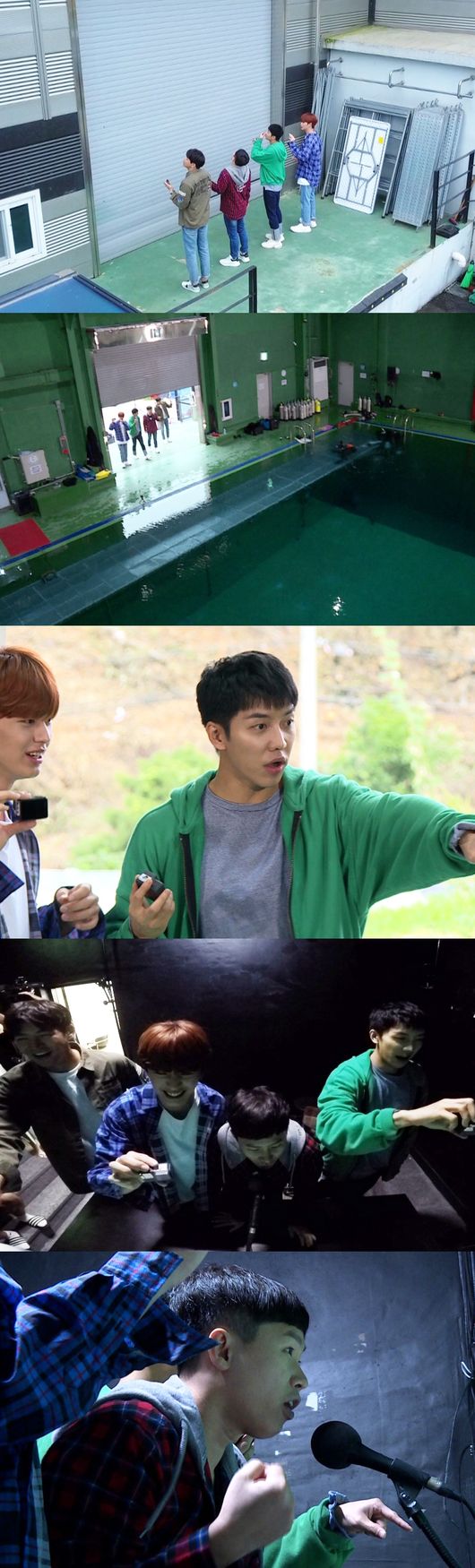 사부가 기다리고 있다는 건물 앞에 다가서자 셔터 문이 서서히 올라가고, 멤버들의 눈앞에 펼쳐진 것은 거대한 수영장이었다. 사부가 무려 수심 7M 깊이의 수중 스튜디오 안에서 멤버들을 기다리고 있었던 것. 멤버들은 물속을 자유롭게 누비는 사부의 모습을 보고 연신 감탄했다.