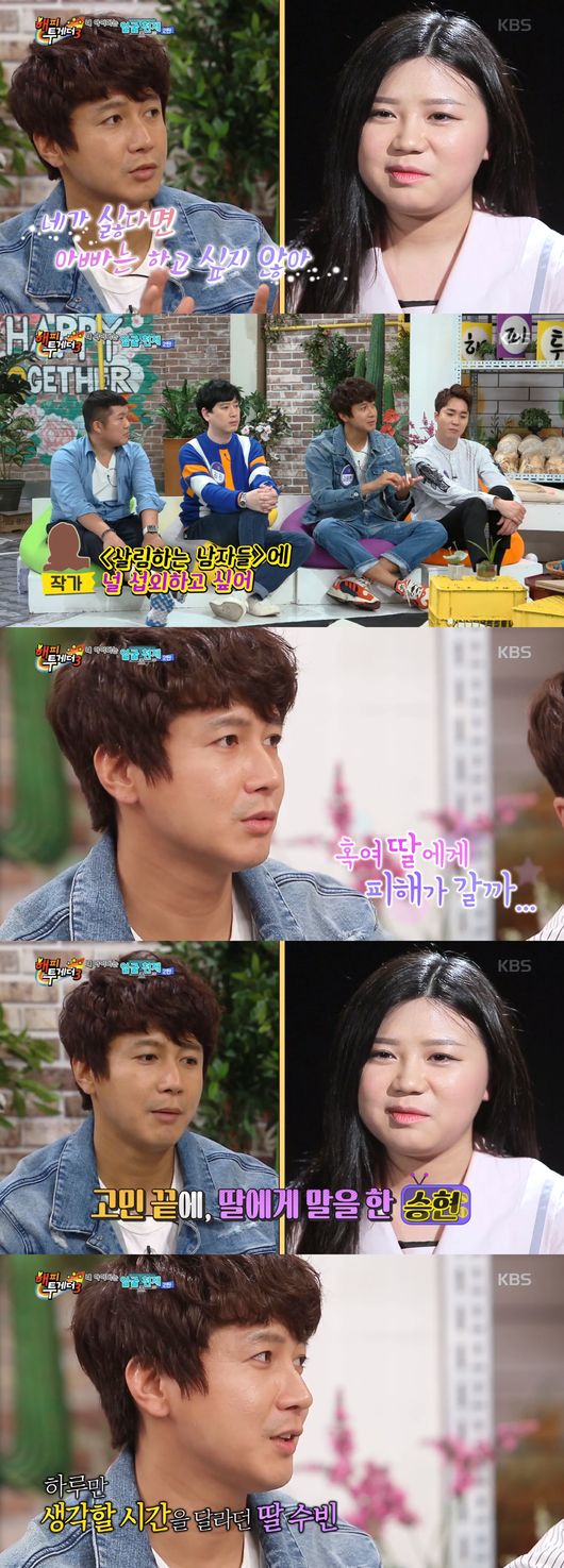 방송 초반만 하더라도 김승현은 사춘기 딸과 갈등을 빚는 모습을 보였지만 딸과 친해지기 위해 노력하고 가족을 위해 애쓰는 모습은 감동을 자아냈다.