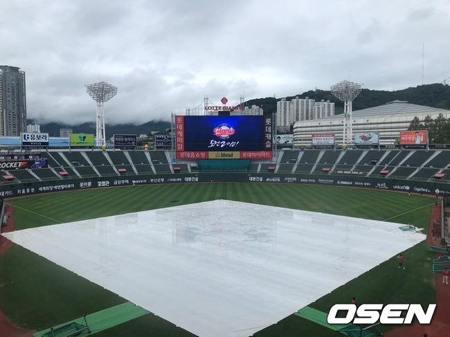 부산 지역에는 새벽부터 강한 바람과 함께 빗줄기가 뿌렸다. 제 25호 태풍 콩레이가 북상하면서 그 영향이 부산에 미치는 것이라고 내다봤다. 하지만 오후 3시부터 빗줄기가 잠잠해지더니 현재는 거의 그친 상태다. 그라운드에는 빗물을 잔뜩 머금고 있는 상태지만 더 이상 비가 내리지 않는다면 그라운드 정비 이후 경기를 진행할 수도 있다. 다만, 오후 4시부터는 사직구장에 다시 비 예보가 내려져 있다.