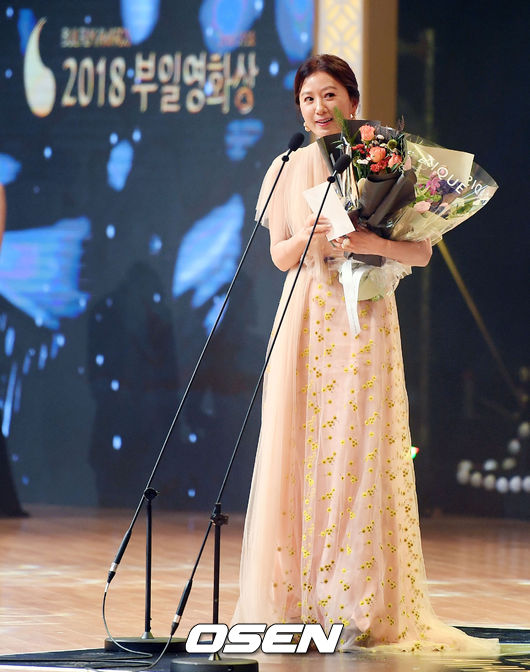 이어 영화 ‘허스토리’로 여우 조연상을 차지한 김선영도 무대에 올라 “민규동 감독님이 저를 캐스팅하실 때 말리지 않으셨던 모든 분들 감사하다. 너무 영광이다”라고 말문을 열었다. 그는 이 영화에서 신사장을 연기했다.