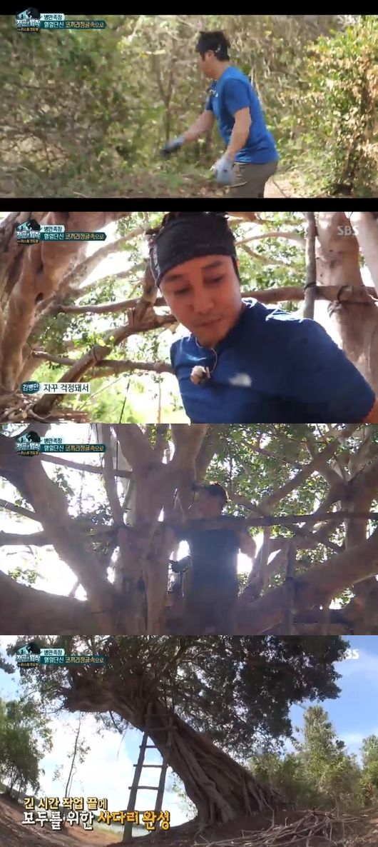 실제 김병만은 나무 위 높은 곳에 안전한 트리하우스를 만들어 시청자를 놀라게 했다. 또 김병만은 만에 하나 생길 수 있는 위험을 막기 위해 더욱 만전을 기해 나무와 나무를 엮는 모습으로 모두를 안심하게 했다. /jeewonjeong@osen.co.kr