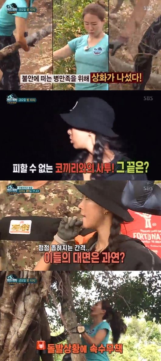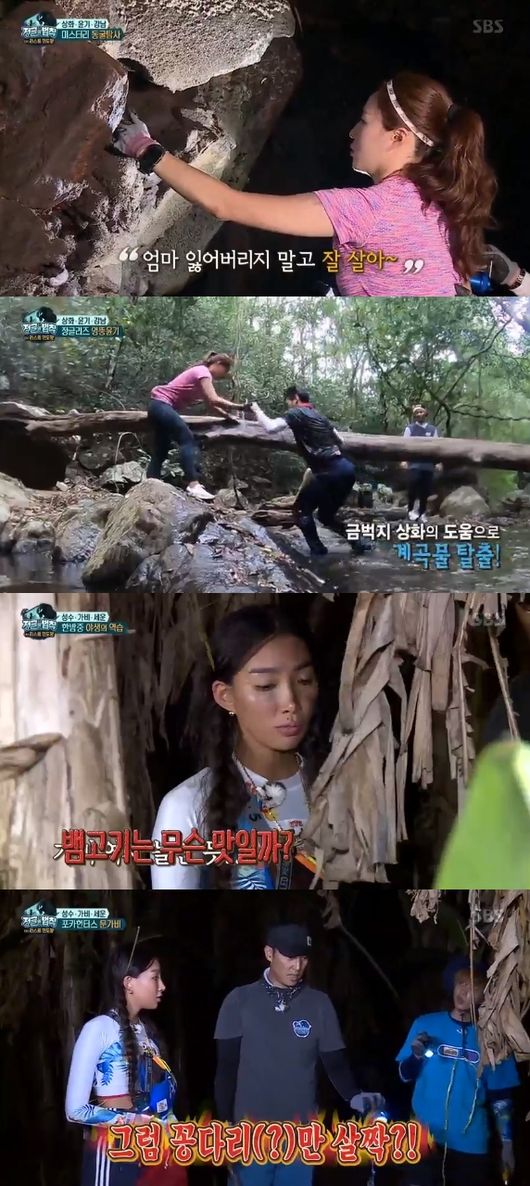 이날 방송에서 이상화 곽윤기 강남은 미스터리한 동굴 탐사에 나섰다. 강남은 동굴에 아래 바글바글 자리한 바퀴벌레에 겁을 먹었고, 이상화는 "내가 먼저 가겠다"며 앞장서서 멤버들을 이끌었다. 이상화는 "땅장 나가고 싶었지만 잠을 자야할 수도 있고 먹을 걸 찾아야 할 수도 있으니까"라며 강한 생존 의지 하나로 탐사를 진행했음을 밝혔다.