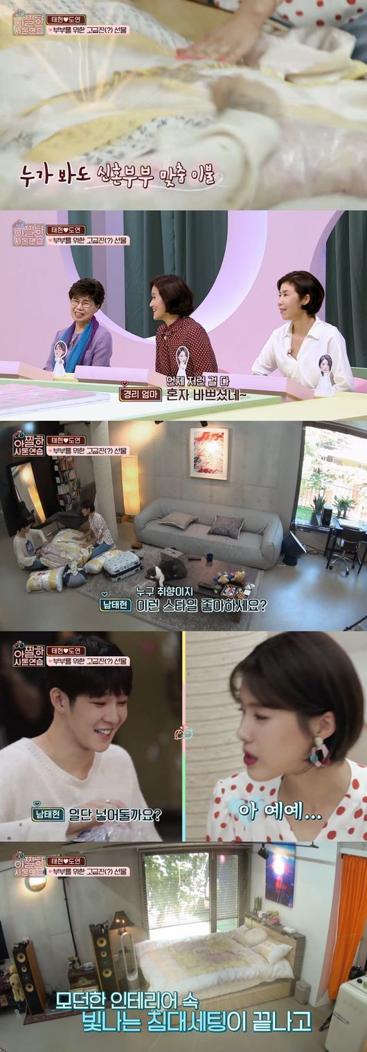 어색한 분위기 속에서 남태현은 적극적으로 장도연에게 다가갔고 말 놓자고 하고는 먼저 반말을 시작, 장도연은 갑작스러운 연하의 반말에 심쿵했다. 이뿐 아니라 남태현의 집에 택배가 도착했는데 장도연 엄마가 보낸 신혼침구였다. 파스텔톤의 화려한 침구가 등장, 첫 만남에 침구가 도착해 두 사람 모두 민망해했다. 장도연은 어쩔 줄 몰라 했지만 남태현은 침실과 잘 어울린다고 하는 등 묘한 분위기가 연출됐다.