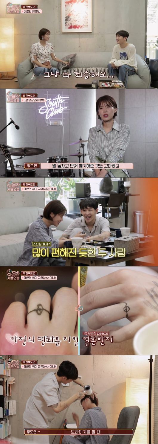 남태현은 수줍어하는 장도연에게 다가가면서 긴장감을 풀어주려고 애썼다. 긴장이 풀린 장도연은 야한 농담도 하면서 금새 남태현과 친해졌다. 특히 남태현이 장도연에게 헤나를 해주고, 장도연이 남태현에게 헤나를 해주면서 자연스럽게 스킨십을 하게 됐고, 스킨십을 하는 두 사람은 화면 가득 설렘을 전했다. 가상부부지만 진짜 부부 못지 않은 모습이었다.