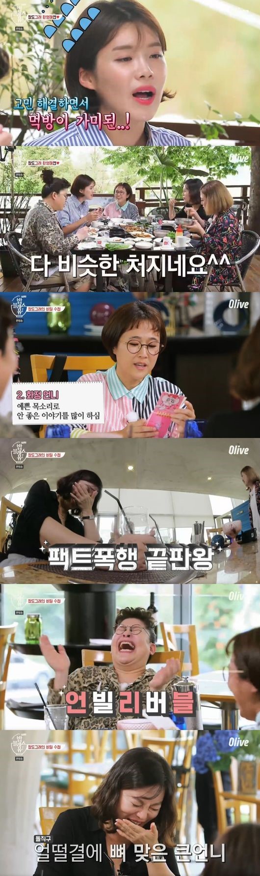 장도연의 케미는 연하 뿐만 아니라 연상의 센 언니들 사이에서도 빛이 났다. 잘 나가는 ‘밥블레스유’에 막내로 합류한 장도연은 방탄소년단 춤으로 시선을 사로잡았으며, 겸손하지만 할 말은 하는 웃긴 막내로 캐릭터를 만들어냈다. 이영자, 최화정, 김숙, 송은이는 장도연에게 열광했다.