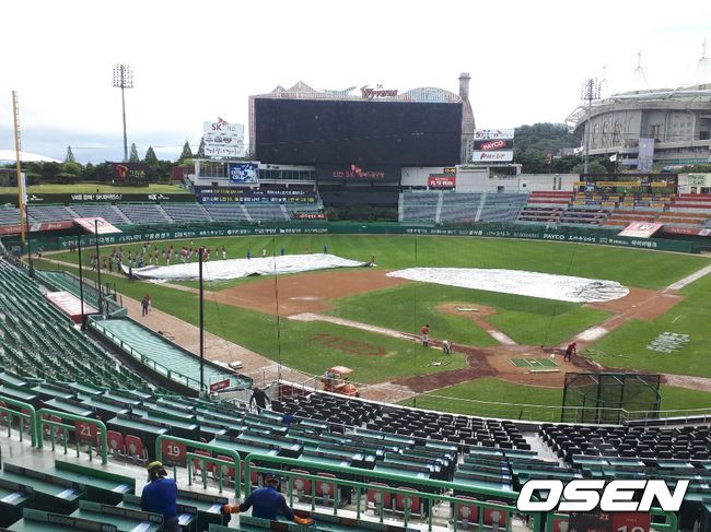 비가 더 이상 오지 않을 예정이고 해까지 떠 경기장 정비는 비교적 무난하게 이뤄질 전망이다. 오후 3시로 예정된 더블헤더 1차전 준비에는 큰 영향이 없을 것으로 보인다. 더블헤더 2차전은 1차전 종료 후 30분 뒤 시작된다.