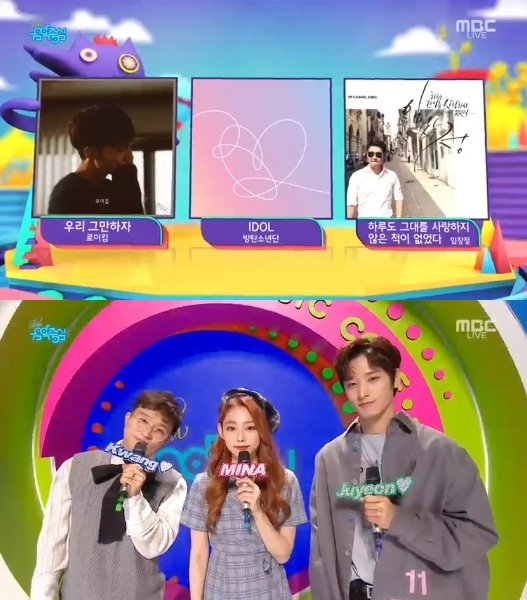 6일 방송된 MBC '쇼 음악중심'에서는 로이킴 '우리 그만하자', 방탄소년단 '아이돌', 임창정 '하루도 그대를 사랑하지 않은 적이 없었다'가 1위 후보로 올랐다.