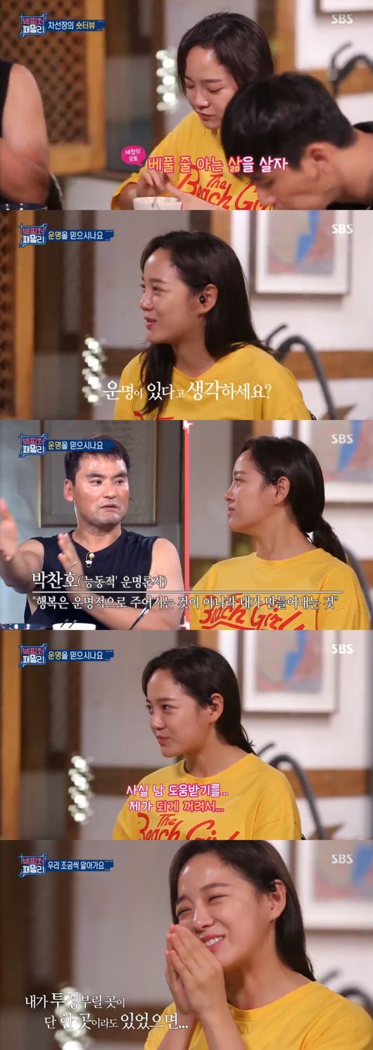 이번에는 김세정이 멤버들에게 운명을 있다고 생각하냐고 물었다. 차은표와 박찬호, 우효광, 류수영은 각자 진지하게 자신의 생각을 얘기했다. 그러면서 차인표는 "힘들고 제일 어려울 때 길모퉁이를 돌면 누군가 뜻하지 않게 도와주는 경우가 있지 않냐"고 했다.