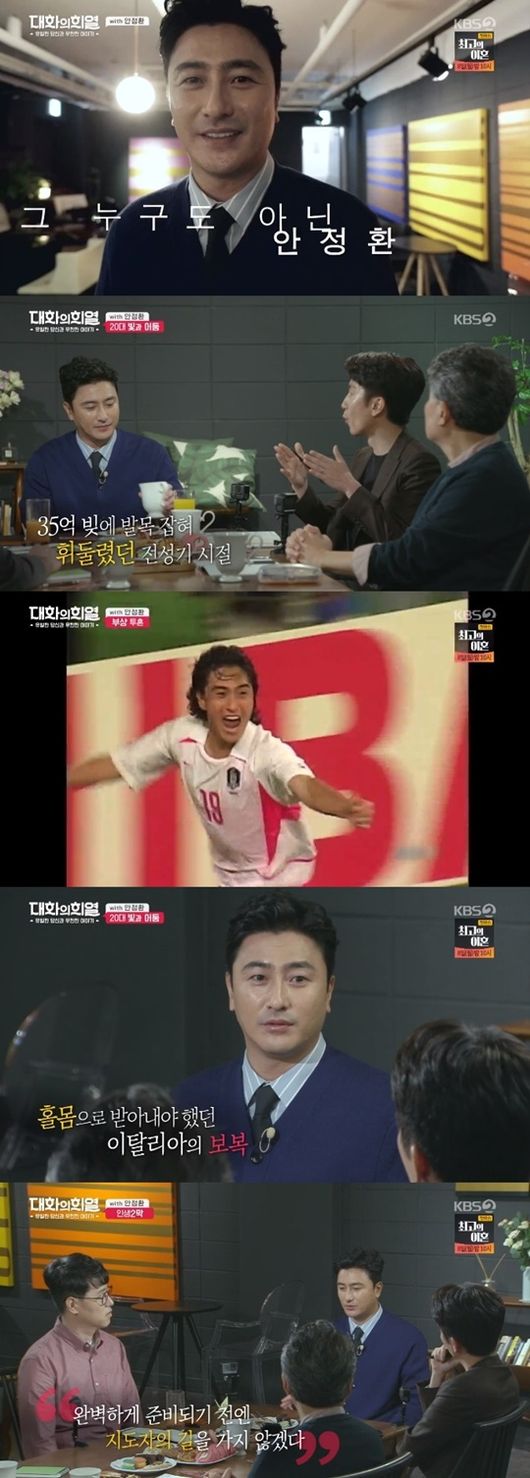2002년 월드컵 4강 신화의 주역으로 대한민국을 들썩이게 했던 주인공. 그 놀라운 폭풍의 중심에 서 있던 안정환. 그의 반전 축구 인생이 파노라마처럼 펼쳐졌다. 지난 10월 6일 방송된 KBS 2TV ‘대화의 희열’에서는 “빈손이 가 닿는 곳”라는 주제 아래, 안정환이 5번째 게스트로 출연해 대화를 나눴다.
