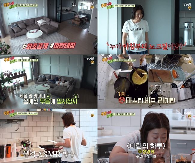 이날 ‘주말사용설명서’에서는 라블리 라미란이 실제 본인의 집과 주말을 보내는 평소 일상을 방송 최초로 공개해 시청자들의 눈길을 끌 전망이다. 항상 유쾌한 매력을 전하던 미란은 실제 본인의 집에서는 ASMR 방송을 방불케 할 정도로 조용한 모습을 보인다고. 미란의 집에서 유일하게 소리가 들리고 움직임이 포착될 때는 바로 요리할 때. 대장금 뺨치는 요리실력을 드러낸 미란은 순식간에 김밥과 낙지 파스타를 완성하는 등 집밥의 요리 신세계를 선보인다.