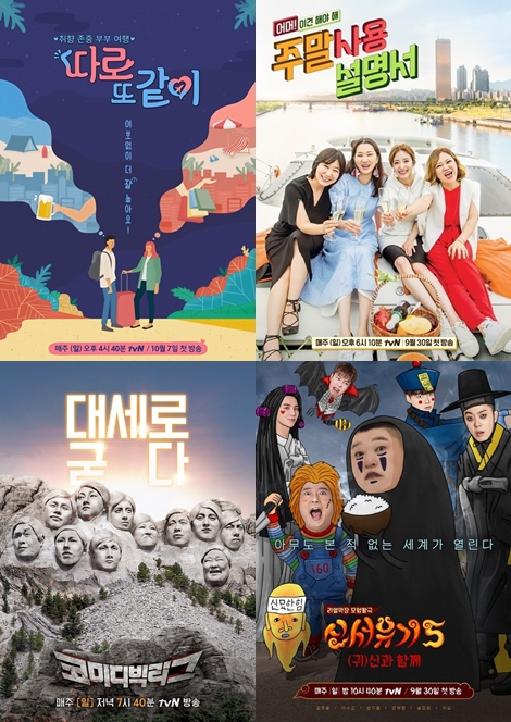 tvN의 일요 예능 라인업이 완성됐다. '따로 또 같이', '주말사용설명서', '코미디빅리그', '신서유기5'로 구성된 신규 예능과 장수 예능의 조화가 그것.