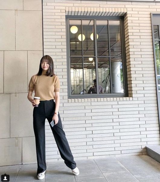 강민경은 7일 자신의 SNS에 사진 한 장을 게재했다.사진 속에는 블랙 바지를 입고 음료를 든 채 포즈를 취하고 있는 강민경의 모습이 담겨 있다. 단아한 미모와 긴 다리길이가 시선을 잡아끈다.