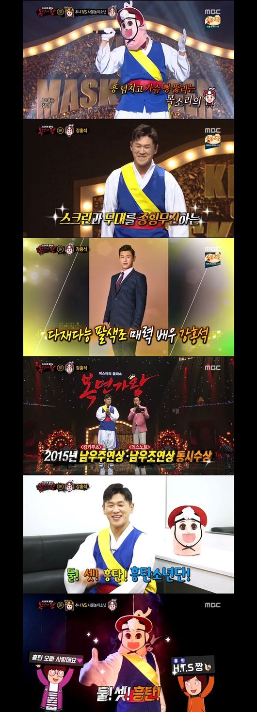 배우 강홍석이 MBC '복면가왕'에서 최고의 무대를 선보이며 방송 후 포털사이트 실시간 검색어 1위에 등극하는 등 화제가 되고 있다.