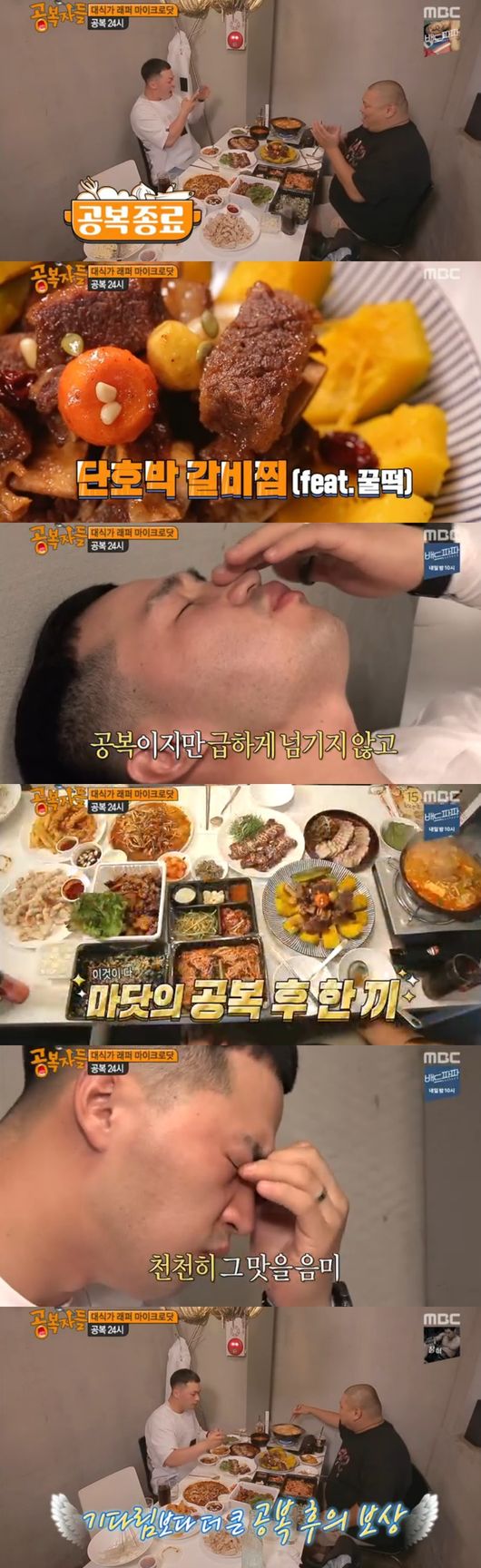 미리짜둔 포메이션에 맞게 한 메뉴씩 흡입, 마이크로닷은 "행복함의 끝판왕"이라면서 "위가 '오늘은 포기안한다' 얘기한다, 맛을 느껴야한다"면서 많이 먹기 위해서가 아니라 무뎌졌던 미각세표를 깨우는 시간이라고 했다. 마침내 공복이 종료됐고, 처음으로 영접할 영광의 음식은 계획했던 순서대로 양장피부터 천천히 맛을 음미했다.