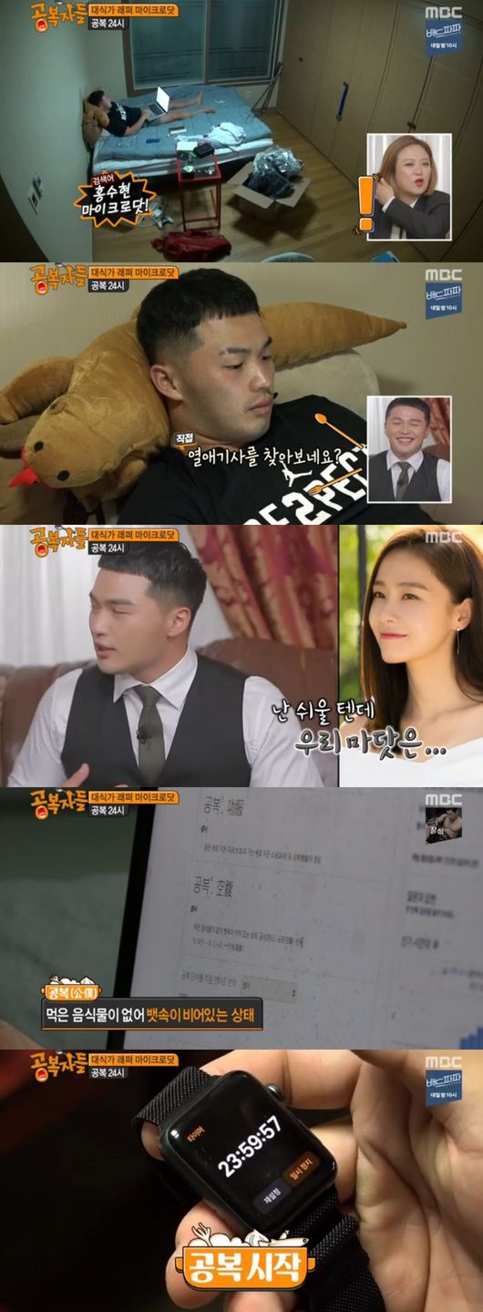 마이크로닷은 홀로 방에서 공복의 의미를 검색했다. 공복자가 도망자들인 줄 알았다고. 공범자로 들었다고 해 웃음을 안겼다. 이어 마이크로닷은 인터넷을 켠 후 자신의 이름을 검색, 열애기사를 확인했다. 홍수현 이름을 읽으면서 마이크로닷은 "커플기사밖에 없다, 얼른 또 앨범내야겠다"고 말했다. MC들은 "그 분이 공복한다니 뭐라고 하냐"고 질문, 마이크로닷은 "난 쉬운데 힘들 거라더라"면서 "굶는 것 진짜 잘한다"며 놀라워했다.