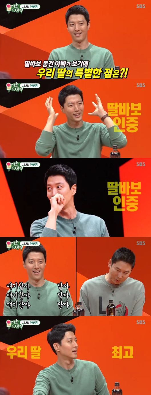 신동엽은 "부모가 되면 자식바보가 되기마련인데, 어떠냐"면서 딸바보 이동건이 보기에 자신의 딸이 특별한 점이 있냐고 물었다. 이동건은 "곱슬머리, 머리가 풍성하게 길고 예쁘다"며 미소지었다. 이어 천재성에 대해 묻자, 이동건은 "여자아이인데 운동능력이 있다 벌써 다섯발이상 걷는다"면서 "굉장히 빠른 편, 남자보다 더 빠르다"며 딸 바보를 인증했다.