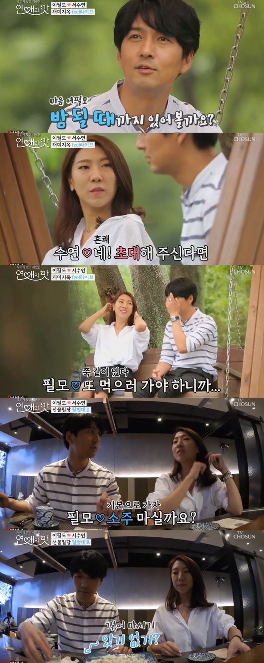 두 사람은 식사하러 이동했다. 이필모는 독단적으로 메뉴를 시켜 패널들의 지적을 받았지만 깜짝 꽃 선물과 초콜릿을 준비해 보는 이들을 감탄하게 했다.