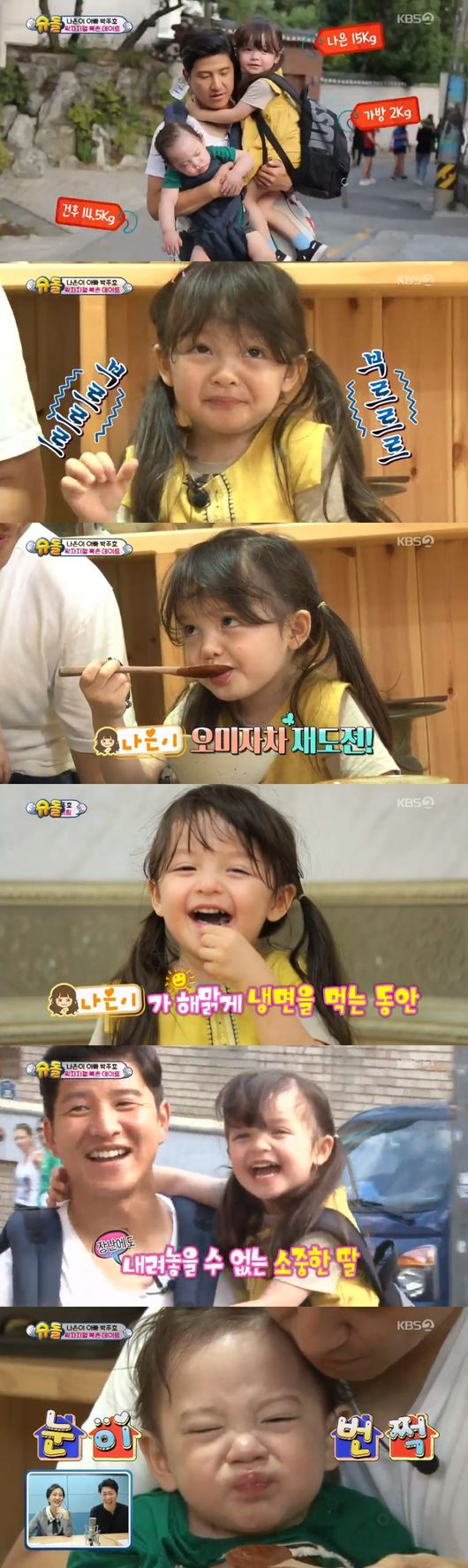 지난 7일 오후 방송된 KBS 2TV '슈퍼맨이 돌아왔다'에서는 나은이네 가족이 북촌 나들이에 나섰다. 박주호는 나은, 건후와 인력거를 타고 북촌 경치를 구경했고, 전통차와 갈비찜 먹방에도 나섰다.