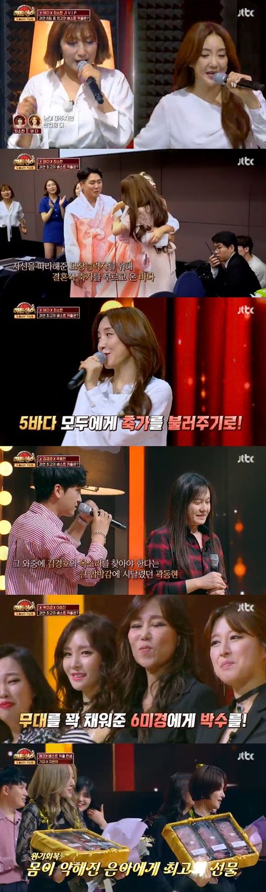 이날에는 바다X최소현, 거미X이은아, 김경호X곽동현, 박미경X이효진의 무대가 이어졌다. 최소현과 함께 'V.I.P', '비가'를 부른 바다는 최소현뿐 아니라, 바다 특집에 나왔던 5바다와의 우정을 전했다. 무대 위에서 최소현은 "4천만원 상금으로 결혼 준비를 하고 있다. 내년에 결혼할 예정"이라고 밝혔다. 이에, 바다는 "지난 번에 아쉽게 2등 했던 김혜인의 축가를 해줬다. 못 간다고 해놓고 깜짝 놀라게 해줬다. 신부 어머님이 저한테 '우리 딸이 더 똑같아서 미안해'라고 인사하시더라"며 "나에게 특별한 추억을 선사해준 답례로 스케줄이 되는 한 5바다들 모두에게 축가를 불러주기로 했다"고 약속했다.