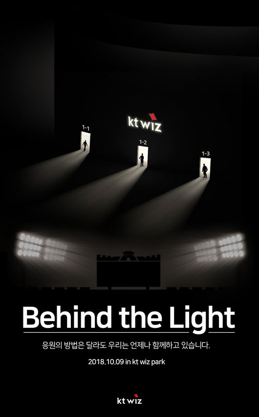 KT 위즈가 9일 열리는 한화와 수원 홈경기에 위즈파크 구장 관리 스태프들의 노고를 조명하고 응원하는 'Behind the lights' 행사를 진행한다고 밝혔다.