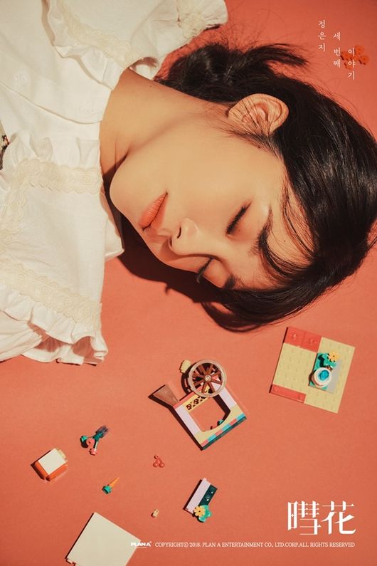 이미지 티저 속 눈을 지그시 감고 누운 정은지는 마치 어린 아이가 꿈꾸는 듯한 표정으로 시선을 끌었다. 주황빛 배경을 바탕으로 흩어진 장난감 블록들이 아기자기한 분위기를 자아냈다.