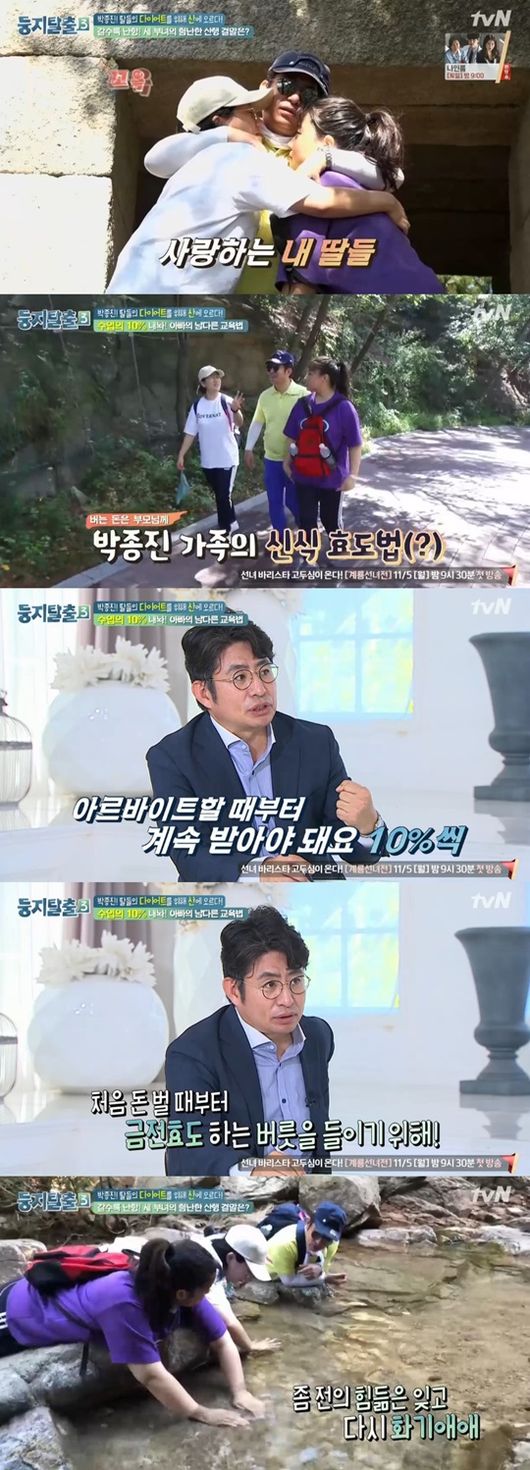 지난 9일 오후 방송된 tvN 예능 프로그램 '둥지탈출3'에서는 박종진과 그의 딸 민, 진 자매가 등산에 나서는 모습이 그려졌다.