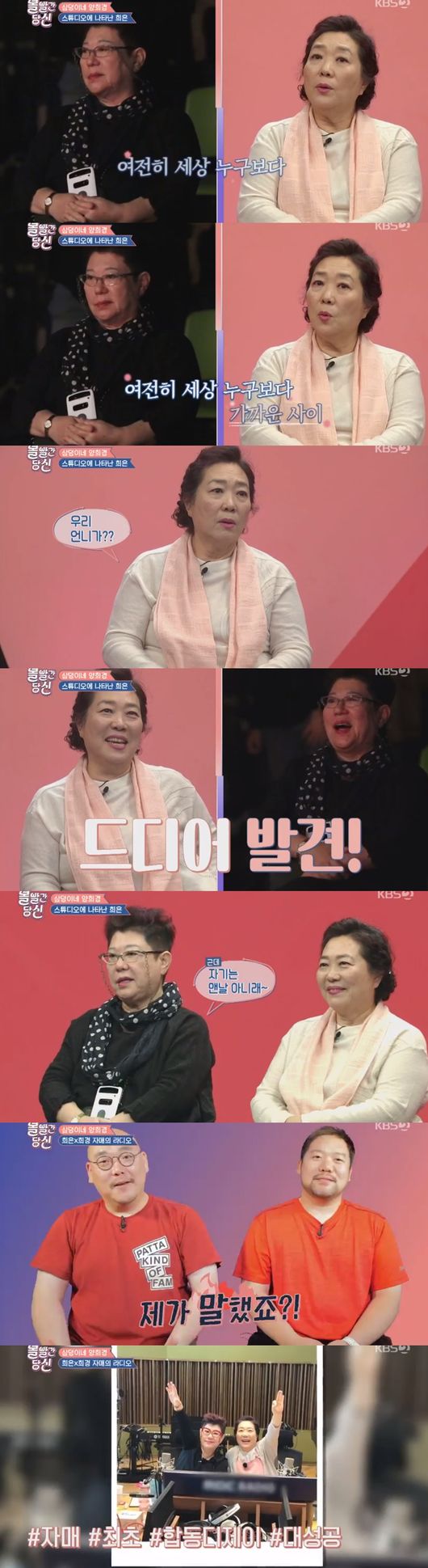 양희은이 진행하는 라디오에 양희경이 함께 DJ로 출연했다. 양희경의 두 아들이 일일 매니저로 나섰다. 라디오 진행을 마치는 시간에 딱 맞춰 두 아들이 도착했다.