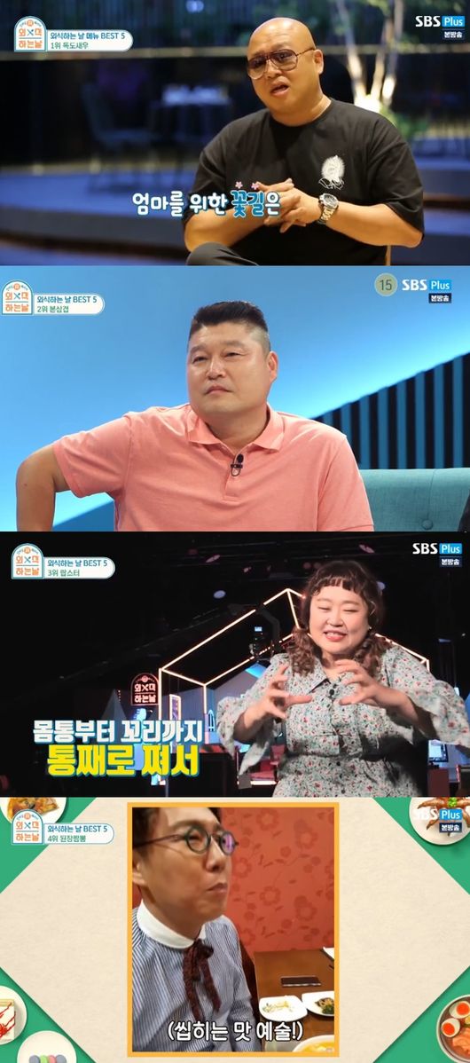 지난 9일 오후 방송된 SBS Plus '외식하는 날'에선 지금까지 화제가 됐던 메뉴들을 소개했다. 이날 김영철, 홍윤화, 김지혜, 돈스파이크는 사랑하는 이들과 함께 외식을 즐겼다.