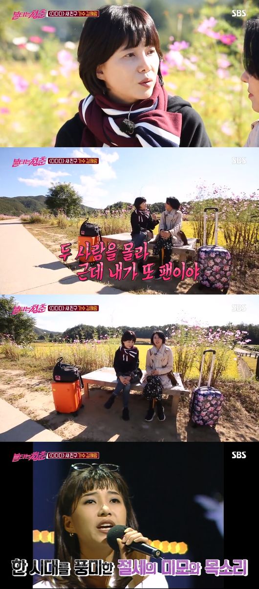 김혜림은 지난 9일 방송된 SBS '불타는 청춘'에 새 친구로 등장해 모두를 놀라게 했다. 강원도 홍천의 코스모스가 잔뜩 핀 들판에서 김혜림은 30년 절친 김완선과 반갑게 해후했다.