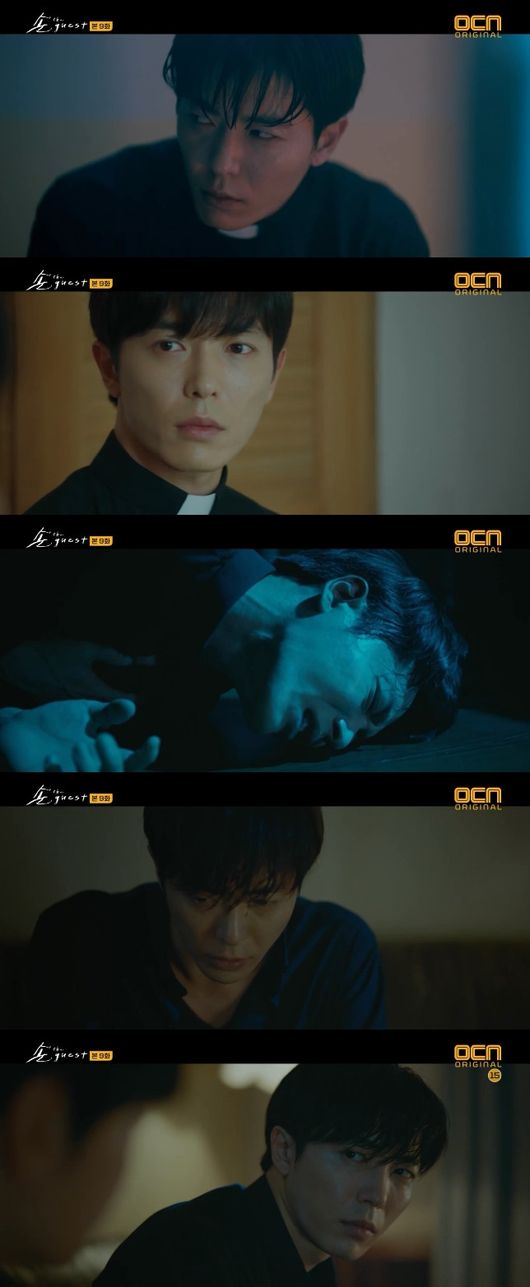 김재욱은 OCN 수목 오리지널 '손 the guest'에서 구마사제 최윤 역을 맡아 열연을 펼치고 있다. 최윤은 과거 박일도에 빙의가 된 형 최신부(윤종석 분)에게 부모님을 잃고, 형을 찾고자 구마사제가 된 인물. 영매 윤화평(김동욱 분), 형사 강길영(정은채 분)과는 악연으로 얽혔지만, 박일도를 잡아야 한다는 똑같은 목표와 숙명으로 손을 맞잡은 상태다.