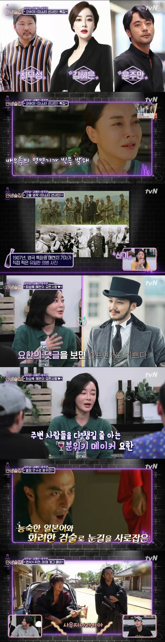 11일 전파를 탄 tvN '인생술집'에 지난달 30일 종영한 tvN '미스터션샤인'의 최무성, 김혜은, 윤주만이 대표로 나왔다. 김은숙 작가와 이응복 감독이 '태양의 후예', '도깨비'에 이어 세 번째로 호흡을 맞춘 이 작품은 1900년대 초 조선을 지키려는 의병들의 이야기를 담아 다시 한번 시청자들의 큰 사랑을 받았다.