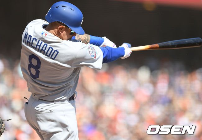 다저스는 2회초 공격에서 선두타자 마차도가 곤살레스의 3구 83마일 체인지업을 공략해 중앙 담장을 넘겼다. 마차도의 한 방으로 다저스가 1-0으로 앞서 있다. / jasonseo34@osen,co.kr