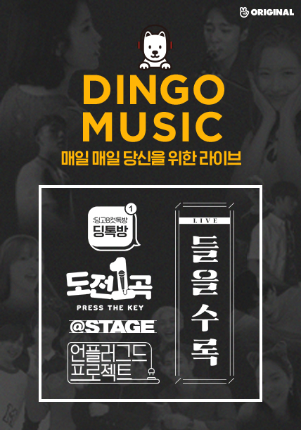 지난 12일, 네이버 브이라이브 V오리지널은 뮤직 콘텐츠의 강자로 떠오른 메이크어스 딩고 뮤직과 손잡고 독특한 포맷의 뮤직 라이브 콘텐츠 '딩고 뮤직'을 선보였다. '딩고 뮤직'은 매 회 출연 그룹(아이돌)의 색깔에 맞게 새로운 포맷의 뮤직 라이브를 선보인다.