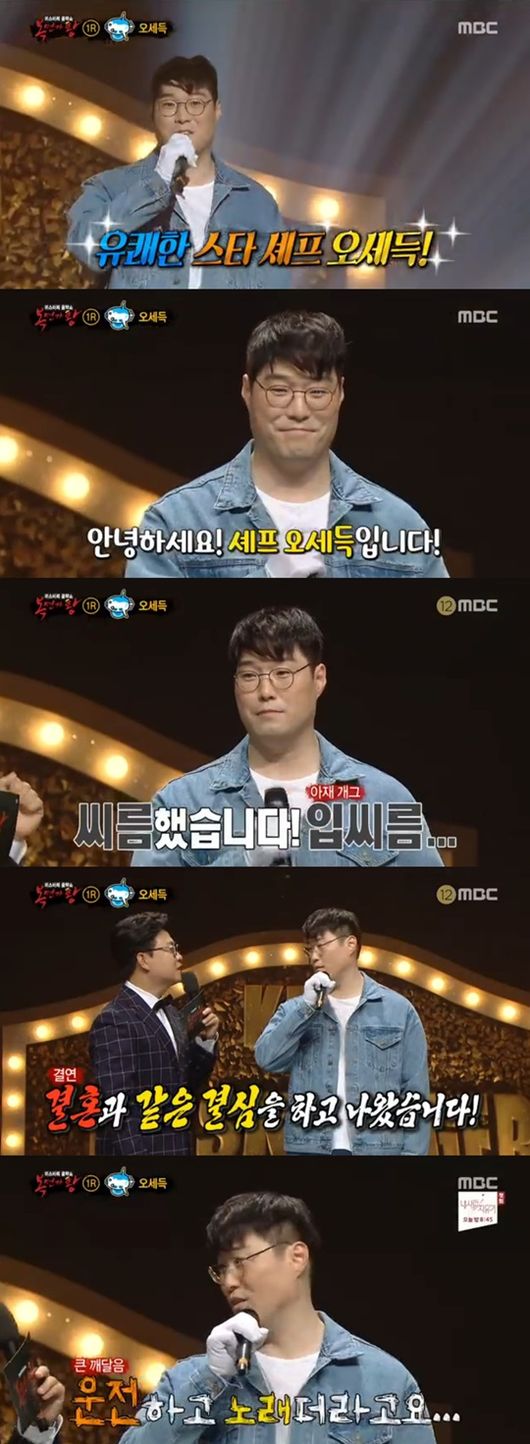 '복면가왕'에 등장한 셰프 오세득이 출중한 노래로 반전을 선사한 가운데, 어쩔 수 없는 사랑꾼 기질로 시청자들을 흐뭇하게 만들었다.