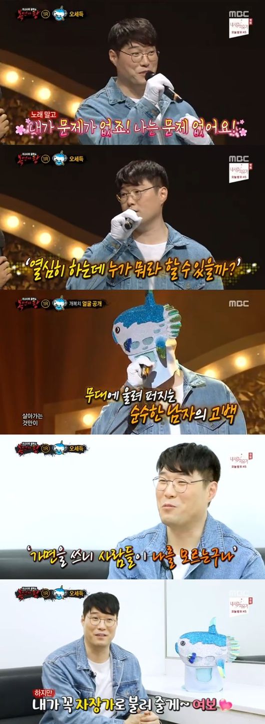 개복치 가면을 쓰고 등장한 셰프 오세득은 모두를 깜짝 놀라게 만든 반전 주인공. 1라운드 세 번째 무대에서 우파루파와 황규영의 '나는 문제 없어'로 듀엣 무대를 꾸민 오세득은 "순수함이 매력적"이라는 평가를 받았다.