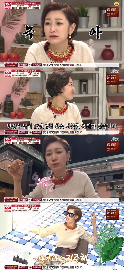 15일 방송된 JTBC '냉장고를 부탁해'에서는 변정수가 정호영, 샘킴 셰프의 요리를 선택했다.