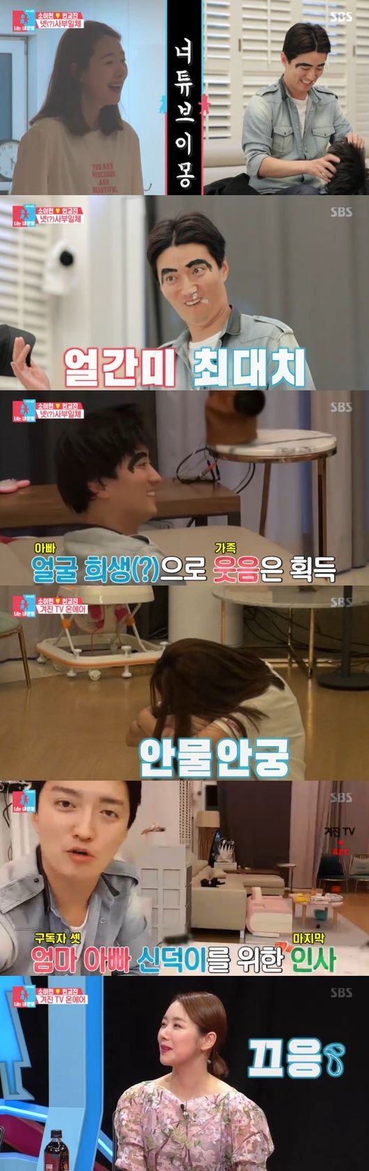 그날 저녁, 집에 돌아온 인교진은 바보 분장을 하고 귀가했고, 가족들이 깜짝 놀랐다. 좋아하는 딸과 달리, 이현은 "오빠가 하고 싶은 채널이 이거냐"며 충격, 하지만 가발을 쓰고 바보 흉내를 내는 인교진을 보고 웃음보가 터져버렸다. 이현은 "잘생겨서 결혼했다, 얼굴 막쓰지 마라"고 말하면서도 웃음을 참지 못했다.