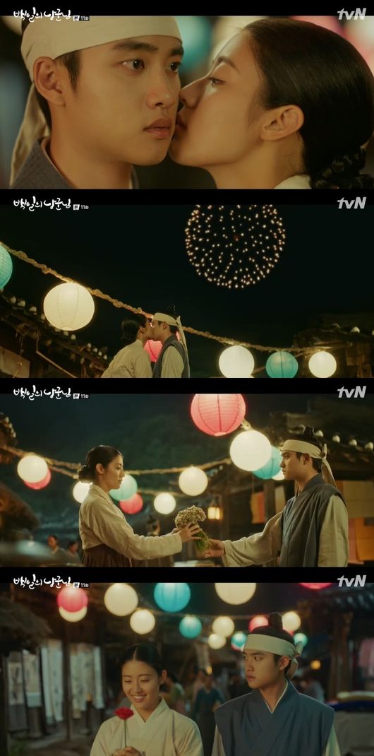 15일 방송된 tvN '백일의 낭군님'에서는 애틋한 사랑을 이어가는 나원득(도경수 분)과 연홍심(남지현 분)의 모습이 그려졌다.