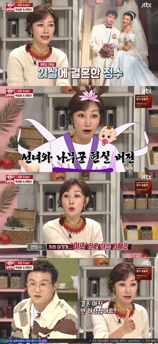 변정수는 15일 방송된 JTBC ‘냉장고를 부탁해’에 출연해 결혼 생활부터 몸매 관리까지, 자신을 둘러싼 여러 가지 이야기를 직접 공개했다.